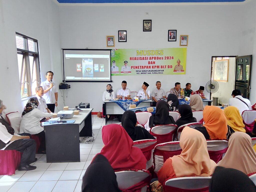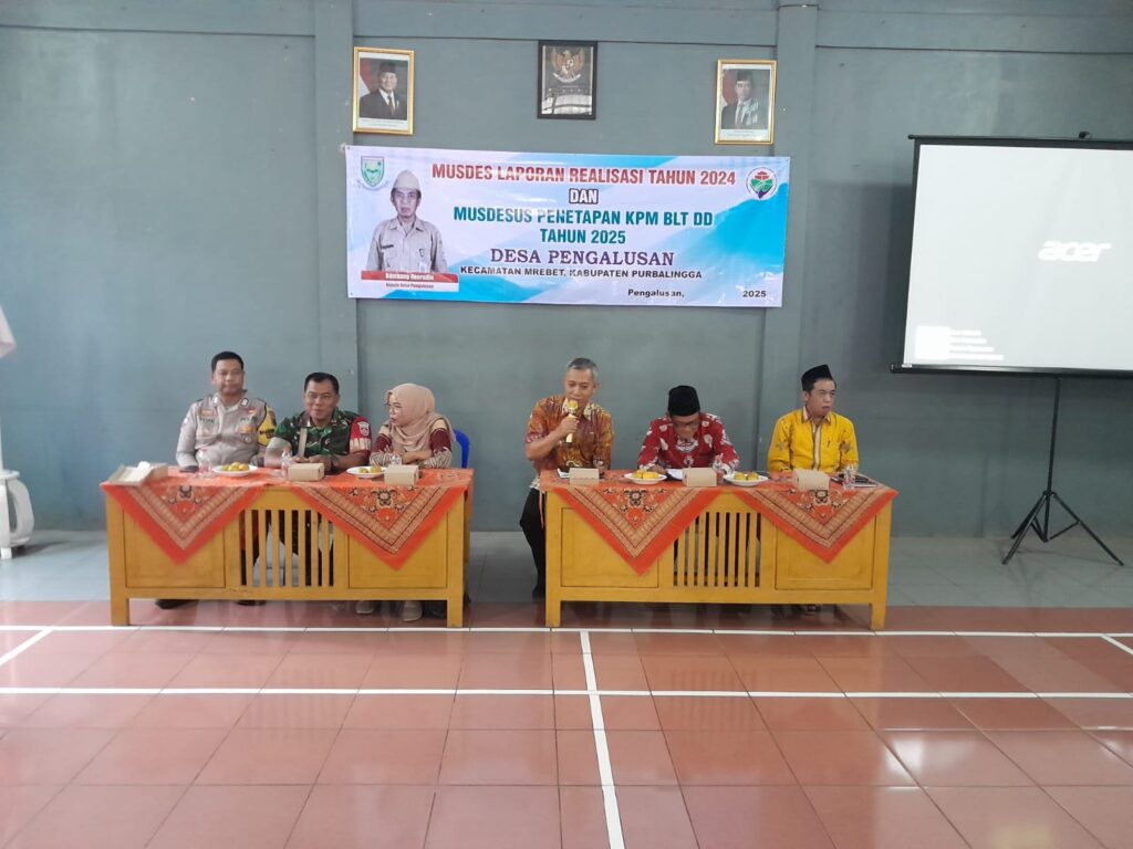 Mrebet, 23 Januari 2025 – Musyawarah Desa (Musdes) yang membahas Laporan Realisasi Anggaran Pendapatan dan Belanja Desa (APBDes) Tahun 2024 dan Penetapan Keluarga Penerima Manfaat (KPM) untuk Bantuan Langsung Tunai Dana Desa (BLT DD) Tahun 2025, yang diselenggarakan antara tanggal 20 sampai 24 Januari 2025, di seluruh Desa se-Kecamatan Mrebet, Kabupaten Purbalingga. Kegiatan ini dihadiri oleh Camat Mrebet, Drs. Hendro Prasetyo, ME, Kepala Desa Mrebet, perangkat desa, anggota Badan Permusyawaratan Desa (BPD), serta perwakilan masyarakat.